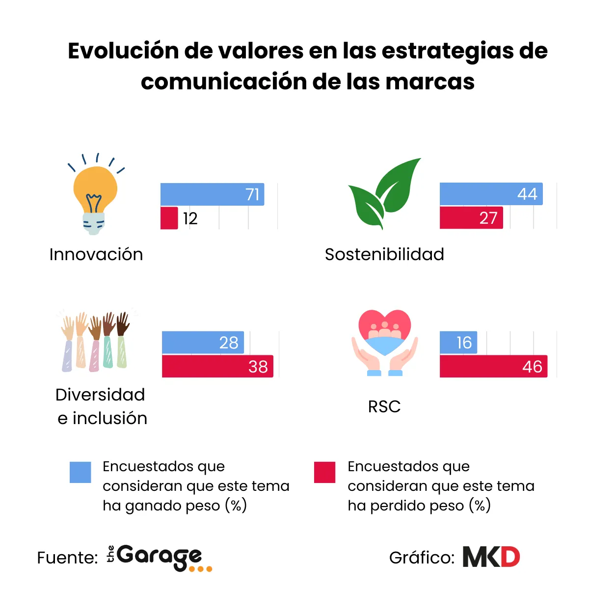 Ahora, el estudio Principales preocupaciones de los dircom dirigido por la agencia independiente theGarage revela que la diversidad, la inclusión y la responsabilidad social corporativa han perdido importancia en la agenda de las empresas. En su lugar, la innovación y la sostenibilidad escalan varios puestos y se colocan en el centro del escenario.